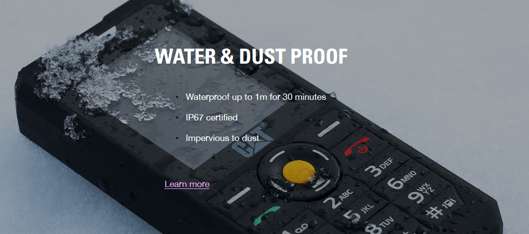 geen apps die je aandacht vragen,- een stof- en waterdicht (IP67) toestel,